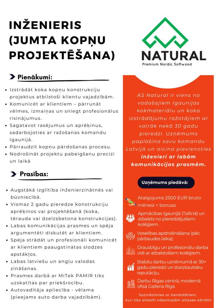 Inženieris (jumta kopņu projektēšana) Sākums For candidates Job Listings Inženieris (jumta kopņu projektēšana) Riga € 2500 EUR bruto Published: 2 mēnešiem Kontakti +37127998660 sintija@tripodlink.lv Similar jobs Izpilddirektors (CEO) Riga € 3500 - 4000 EUR gross Rīgas rajons Published: 2 dienām Key Account Manager € 3500 EUR gross Rīgas rajons Published: 3 nedēļas Biznesa Sistēmanalītiķis € 3500 EUR bruto Rīgas rajons Published: 2 mēnešiem Apaļkoku iepirkšanas specālists/-e € 2500 EUR bruto Latvija Published: 2 mēnešiem